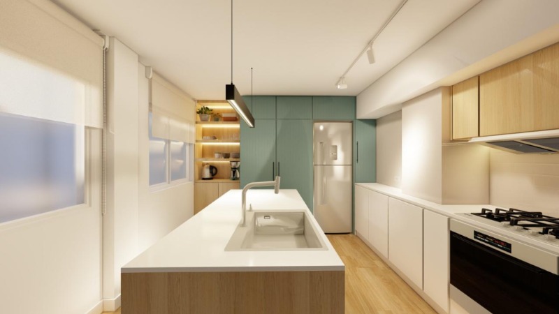 Cuenta con living comedor con salida a balcón exterior, amplia cocina integrada equipada con horno, anafe y campana, amoblamiento a medida, dormitorio principal con baño en suite y vestidor, segundo dormitorio con baño en suite y placard de piso a techo.