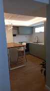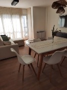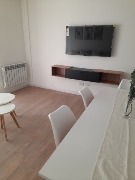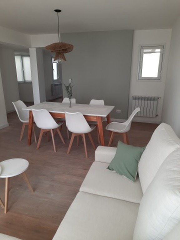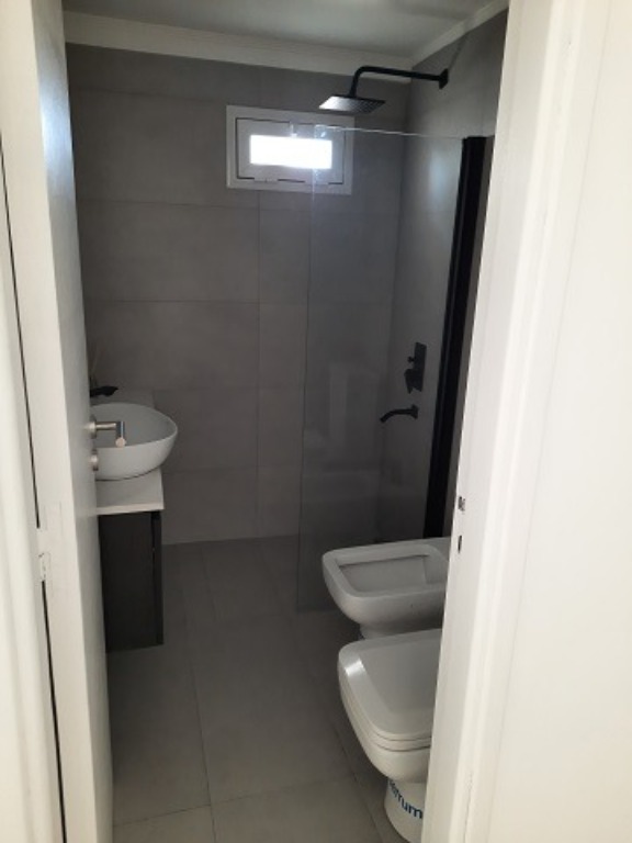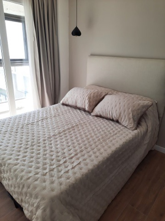3 ambientes externo. Cuenta con 2 dormitorios, 2 baños completos, cocina integrada con barra, calefacción y agua caliente mediante caldera individual. Se entrega con mobiliario y artefactos a estrenar: anafe, lavarropas, heladera y TV. Cochera fija en el mismo edificio. Baulera