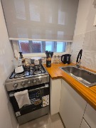 Departamento de 1 ambiente con amplio ventanal de piso a techo súper luminoso. Cocina separada con lavadero. Baño completo con mampara. PATIO, detalles en madera, mobiliario, iluminación solar, salida de agua nueva y gas