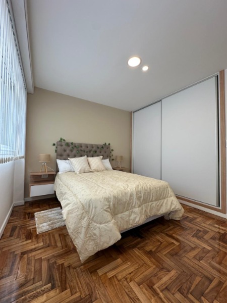 Cuenta con Living comedor a la calle con salida al balcón terraza. Cocina incorporada. Dormitorio a la calle con ventana. Segundo dormitorio al contrafrente con ventana